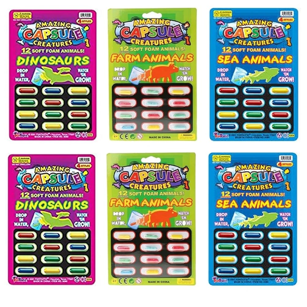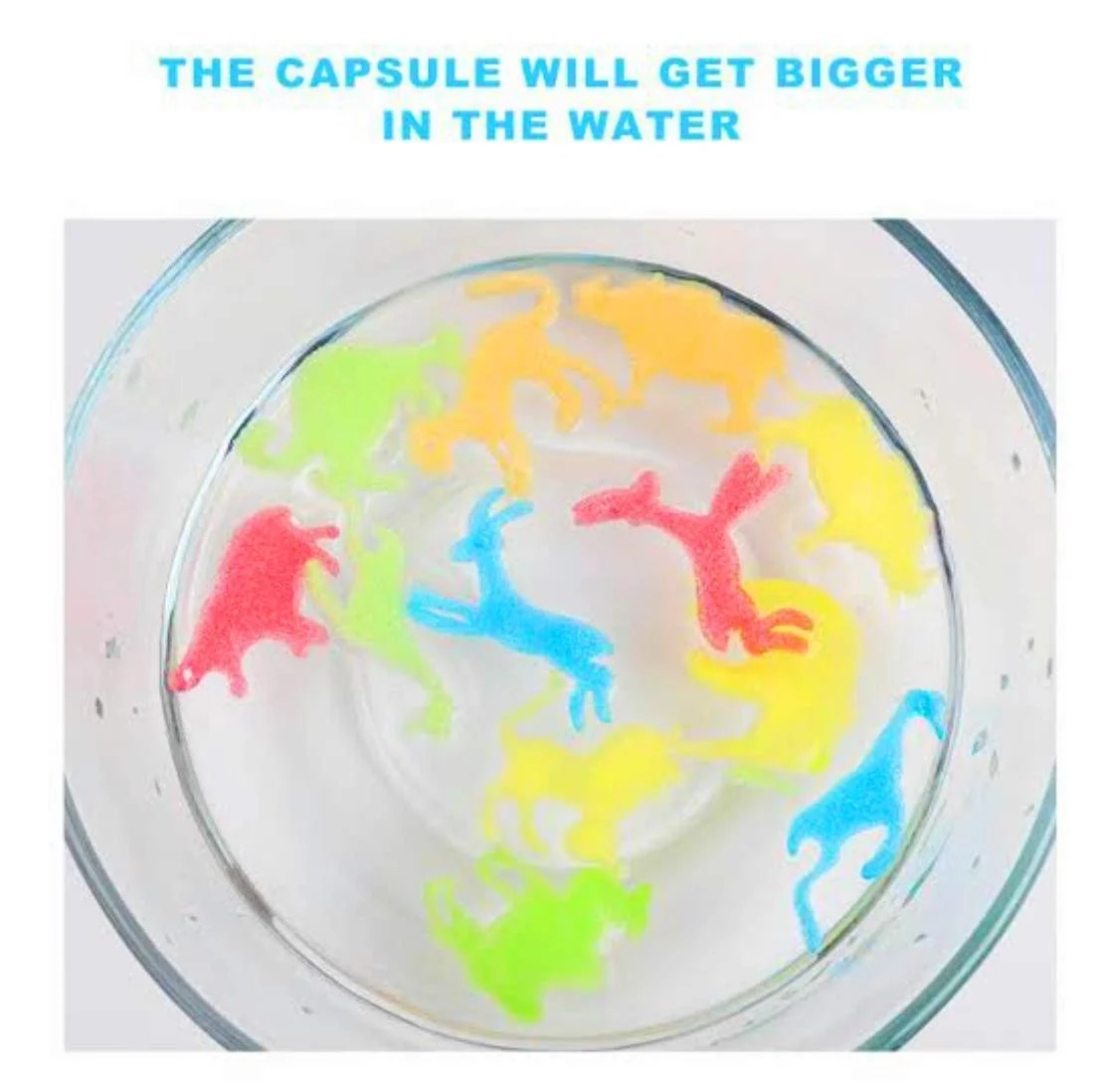 These capsules turn into foam animals after 10/15 minutes in lukewarm water.