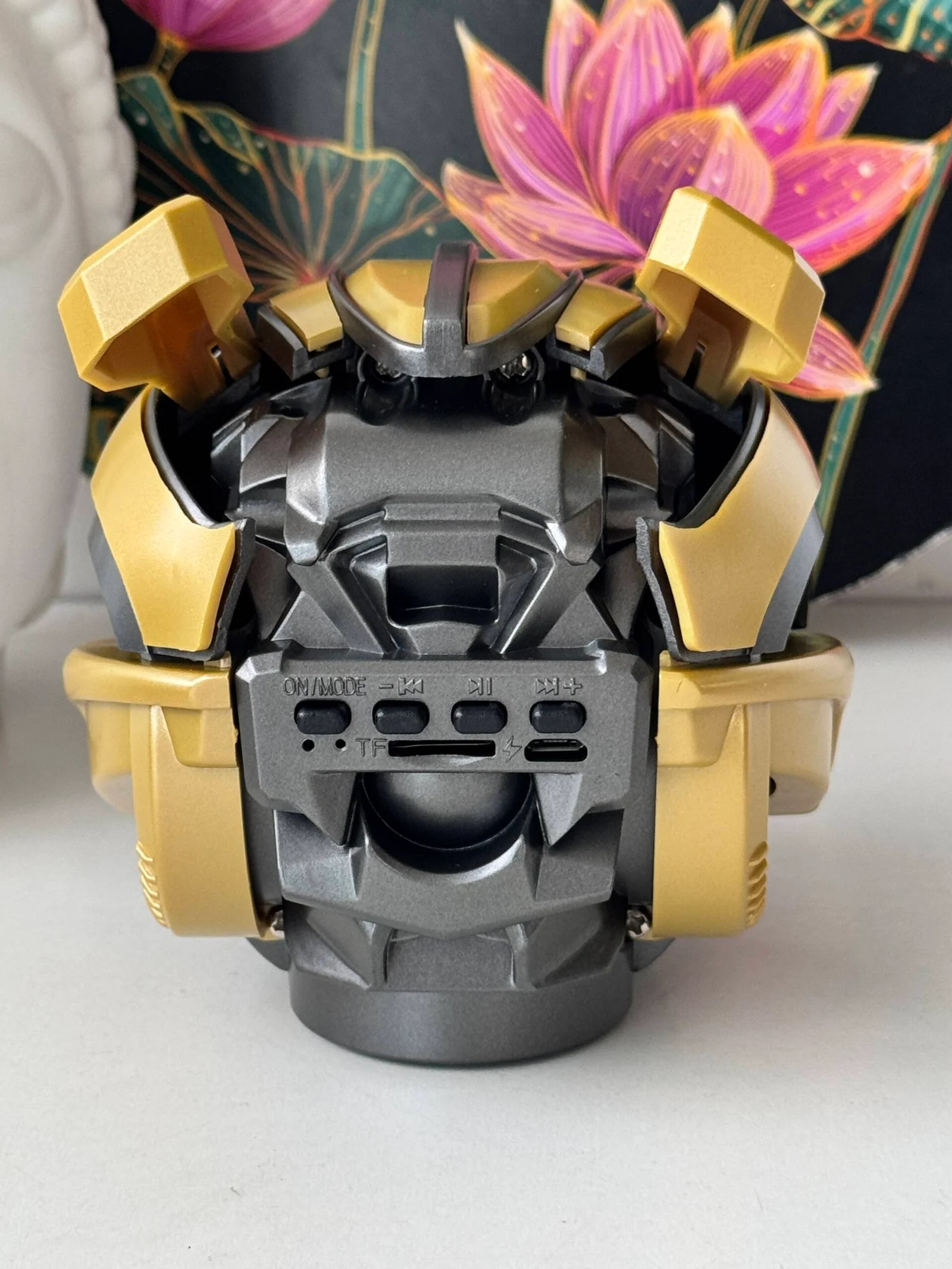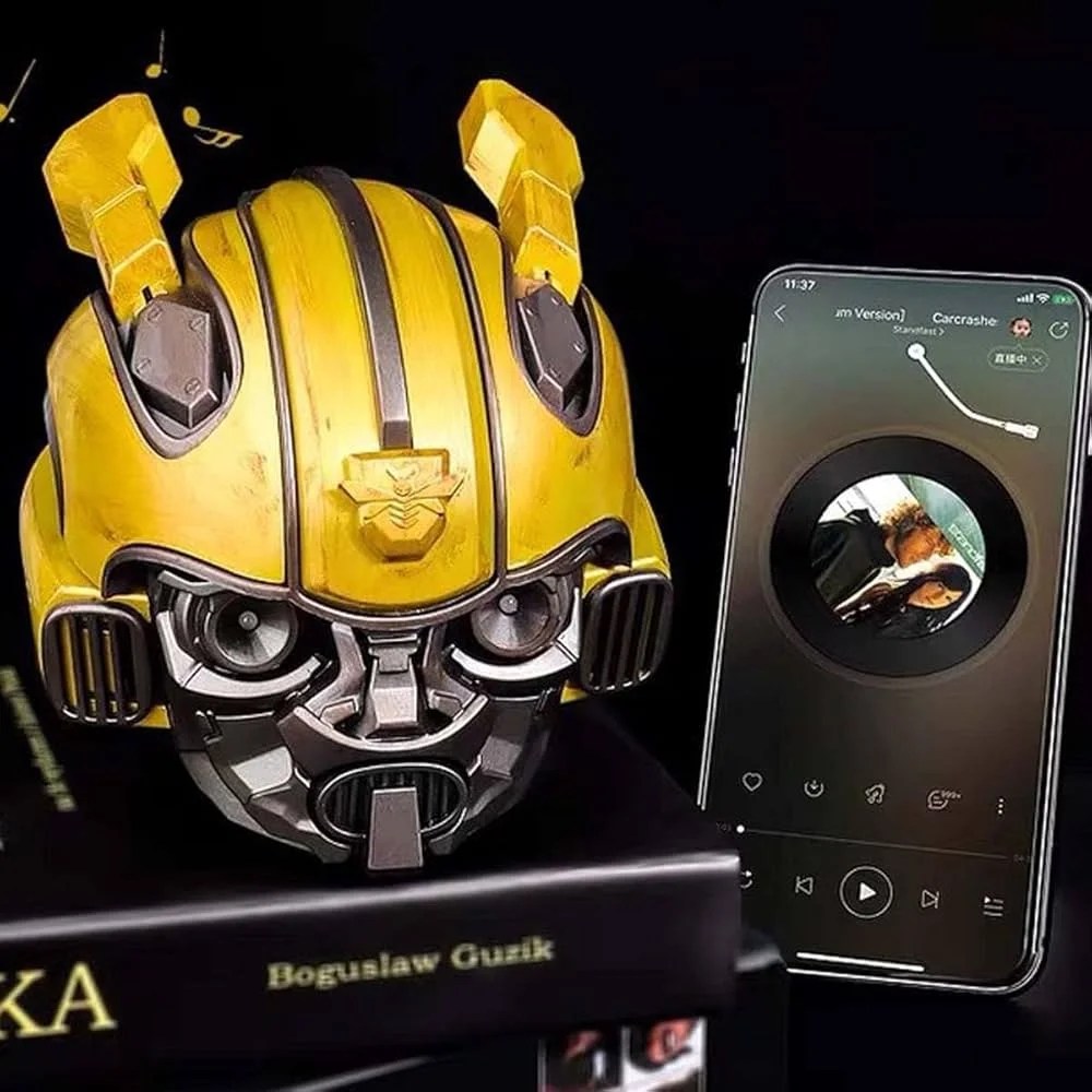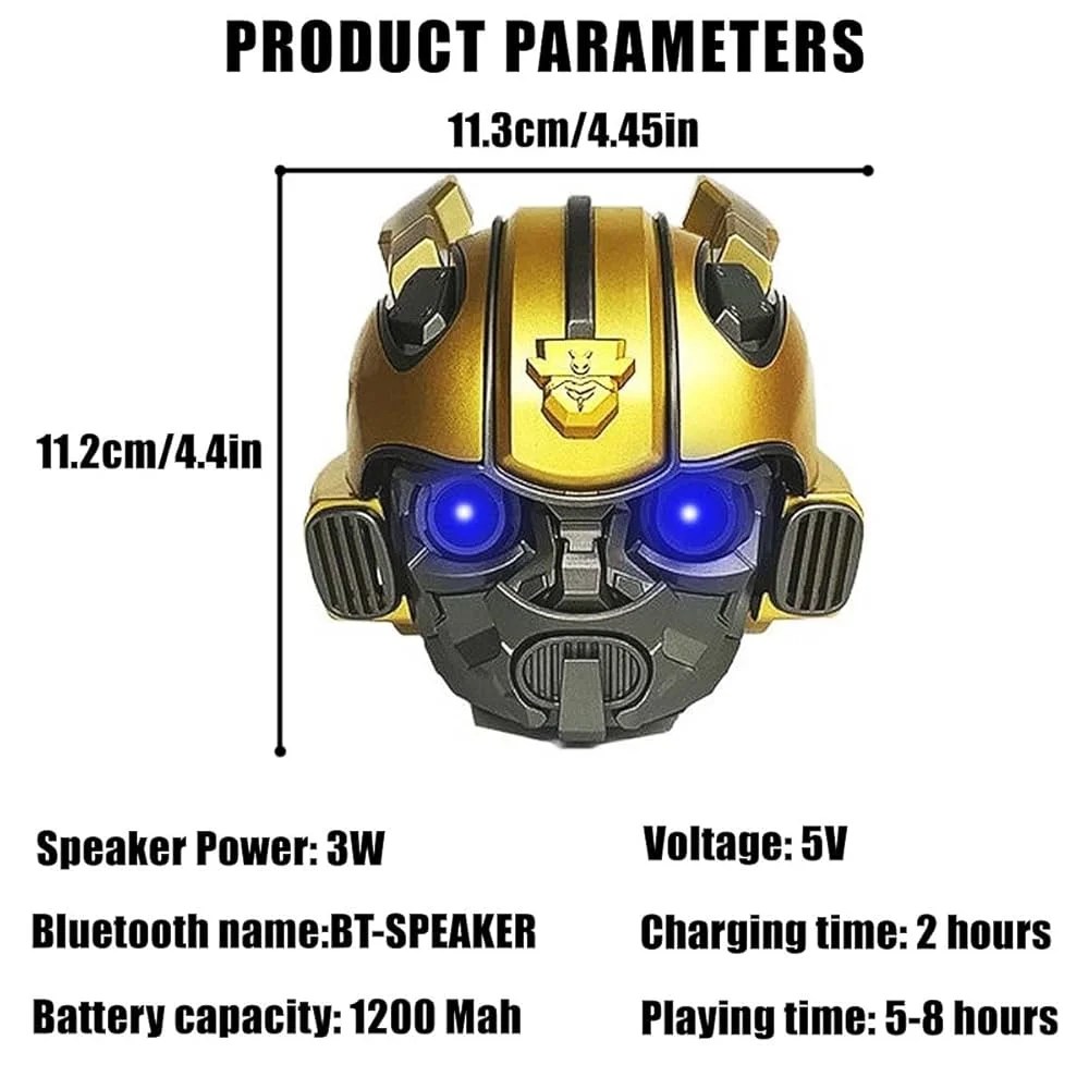 Bumblebee Lovers – With the shape of Bumblebee Helmet, blue eyes effect, eyes of the Bumblebee are turning blue and have a little projecting effect when the speaker is turned on. you can have the coolest speaker around