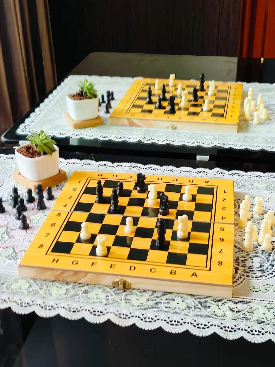 Our Wooden Chess Board is not just a gaming accessory but a statement piece. The rich, warm tones of the wood, coupled with its polished finish, make it an attractive addition to your living room, study, or game room. It’s a perfect blend of functionality and aesthetic appeal.